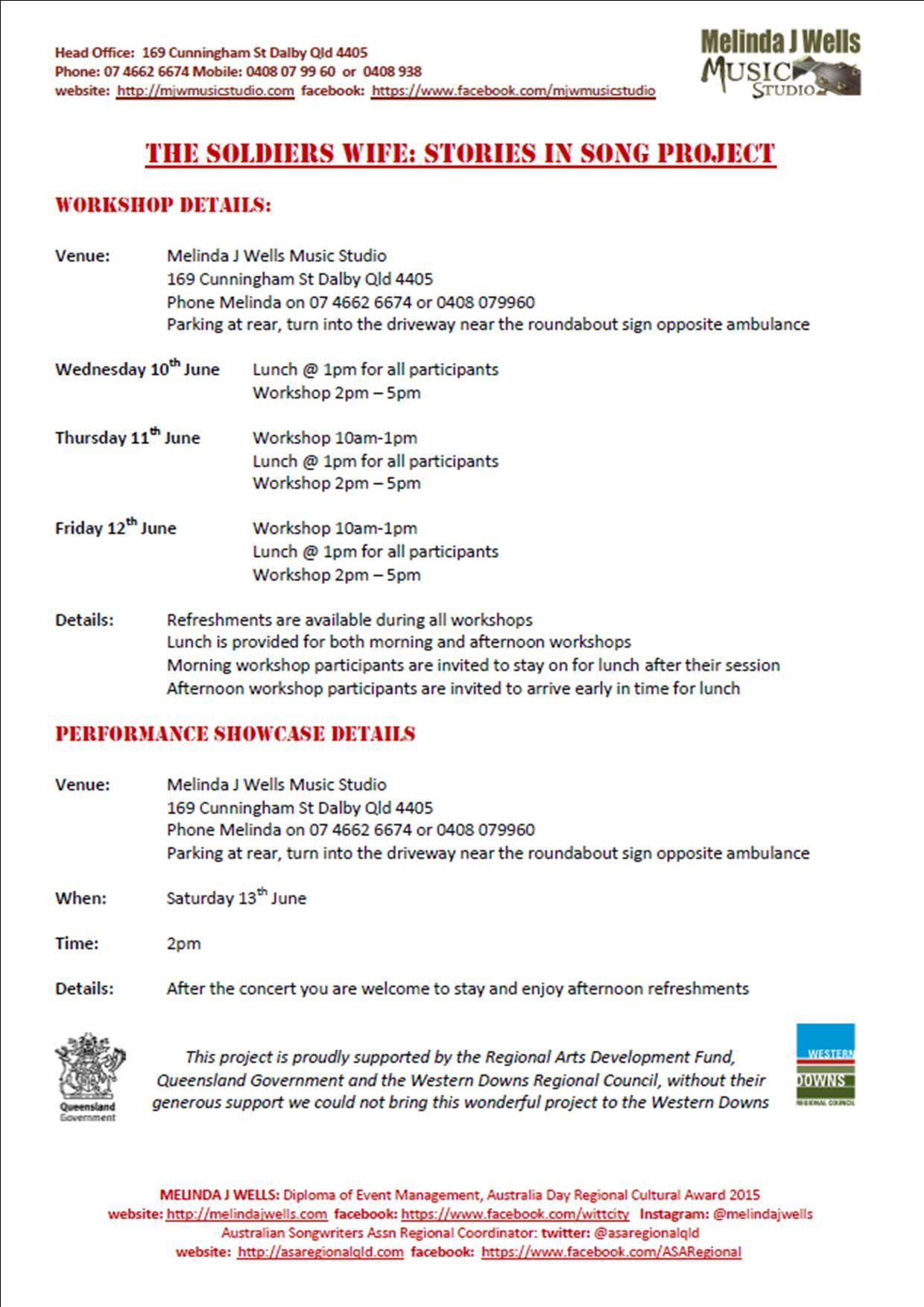 Soldier’s Wife: Stories In Song Project 2015 (Funded by Regional Arts Development Fund, Arts Qld and the Western Downs Regional Council